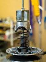 Universal compression tool for easy disassembling and mounting of CVTech pulleys. The compression tool is designed for mounting and / or disassembling most of the secondary pulleys. The tool is required for installing or adjusting & fine tuning the variator upgrade kits.